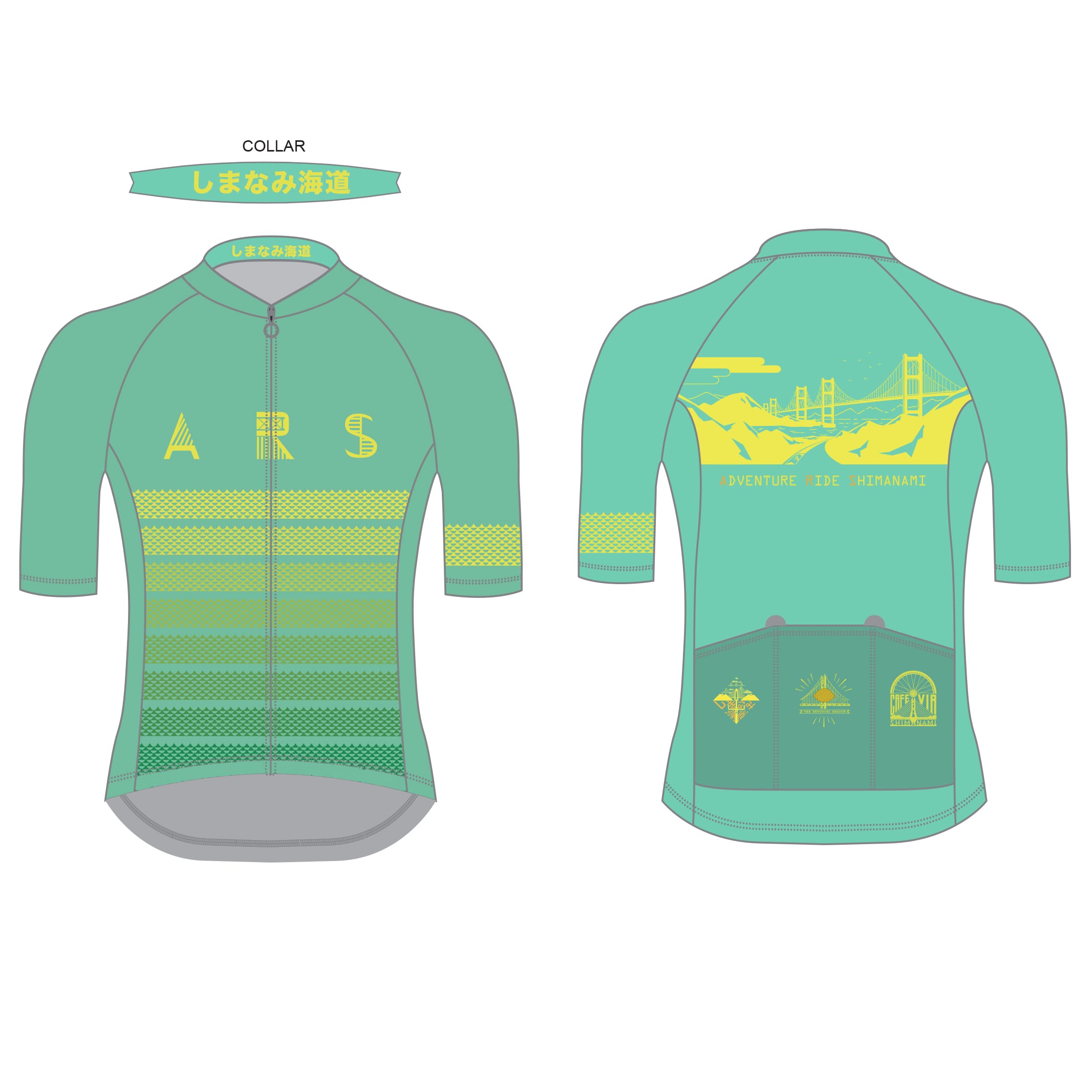 「わさびの色合い&しまなみの橋」をモチーフにした、自然美あふれるサイクルジャージ「ARS WASABI PRO - SUPER STRETCH JERSEY 」。
